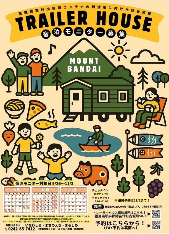 猪苗代トレーラーハウスINN宿泊モニター募集中!